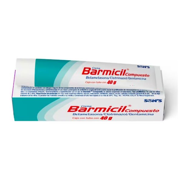 Barmicil Compuesto (Betametasona/Clotrimazol/Gentamicina) Crema 40 g de Laboratorios Son's: Crema dermatológica de alta eficacia con betametasona, clotrimazol y gentamicina para el tratamiento de afecciones cutáneas.