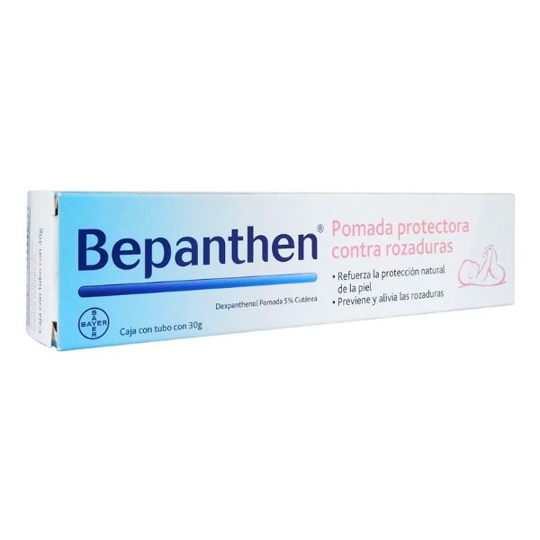 Bepanthen (Dexpantenol) Pomada Cutánea 5% es un producto dermatológico de alta calidad fabricado por Laboratorios Bayer. Cada tubo de 30 g contiene una fórmula especial con dexpantenol al 5%, que es conocido por sus propiedades regenerativas y hidratantes para la piel. Esta crema está diseñada para proporcionar alivio y promover la curación de diversas afecciones cutáneas, como quemaduras leves, irritaciones, heridas superficiales y abrasiones.