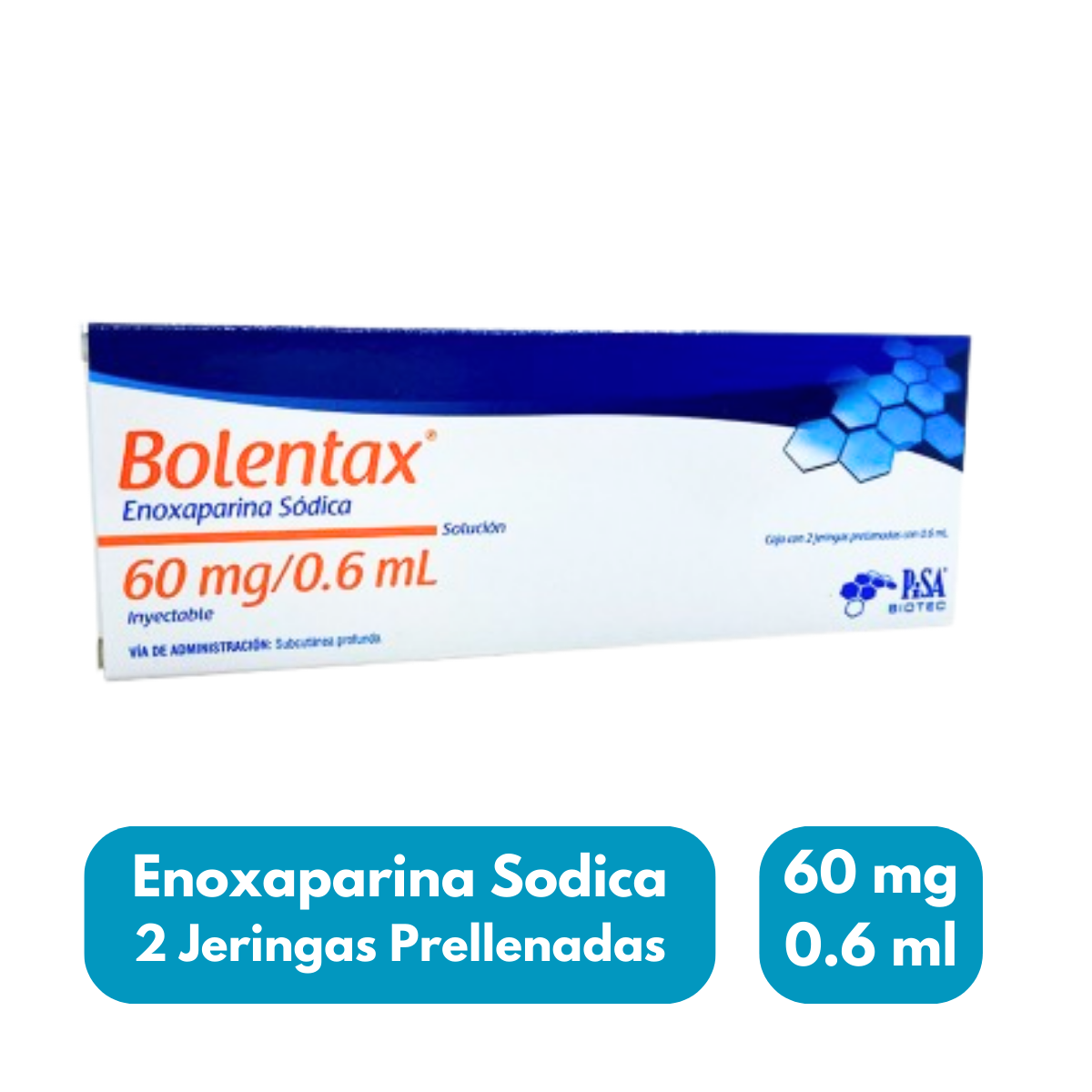 Presentación con 2 jeringas precargadas, cada una con 0.6 ml de solución inyectable que contiene 60 mg de enoxaparina sódica. Elaborado por Laboratorios Pisa, reconocido por su calidad y trayectoria en el ámbito farmacéutico. Su formato en jeringas listas para usar brinda practicidad y seguridad, con el respaldo de un laboratorio confiable.