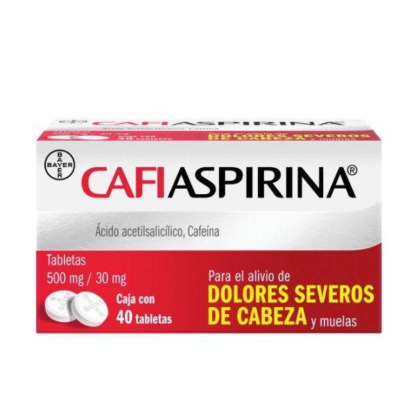 Cafiaspirina 500 mg/30 mg es un medicamento en forma de tableta fabricado por Bayer. Cada caja contiene 40 tabletas diseñadas para aliviar el dolor y la fiebre asociados con dolores de cabeza, migrañas, dolores menstruales y otros tipos de dolor.  Como cualquier medicamento, se recomienda seguir las instrucciones del médico o farmacéutico y leer cuidadosamente la información del producto antes de su uso.