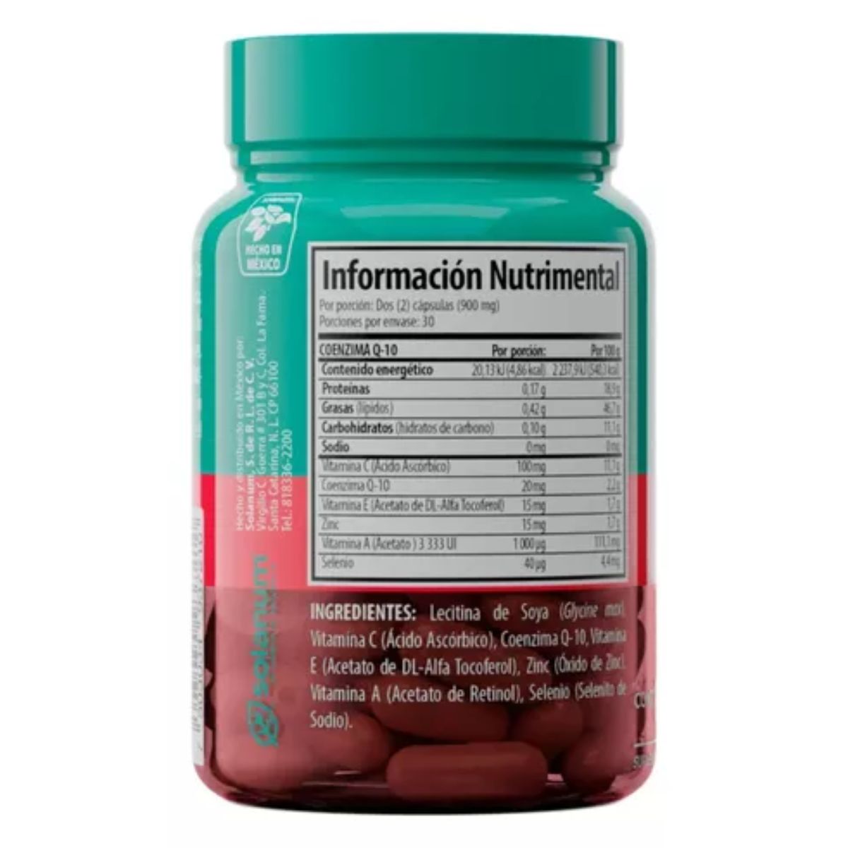 CoQ-10 Vitaminas A, C, E, Zinc Selenio Solanum es un suplemento alimenticio avanzado diseñado para promover la salud celular, proteger el sistema inmunológico y mejorar la vitalidad general. Cada frasco contiene 60 cápsulas, combinando Coenzima Q10 (CoQ-10) con un potente complejo de vitaminas A, C, E, zinc y selenio, esenciales para mantener un cuerpo saludable y enérgico.