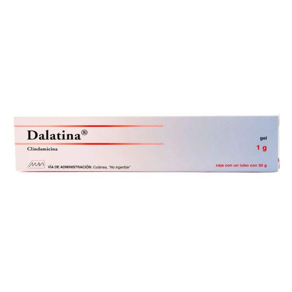 Dalatina (Clindamicina) 1 g es un gel dermatológico de Laboratorios Mavi utilizado en el tratamiento del acné y otras afecciones de la piel. Cada caja contiene un tubo de 30 g de gel. La clindamicina es un antibiótico que combate las bacterias causantes del acné, ayudando a reducir la inflamación y las lesiones cutáneas.