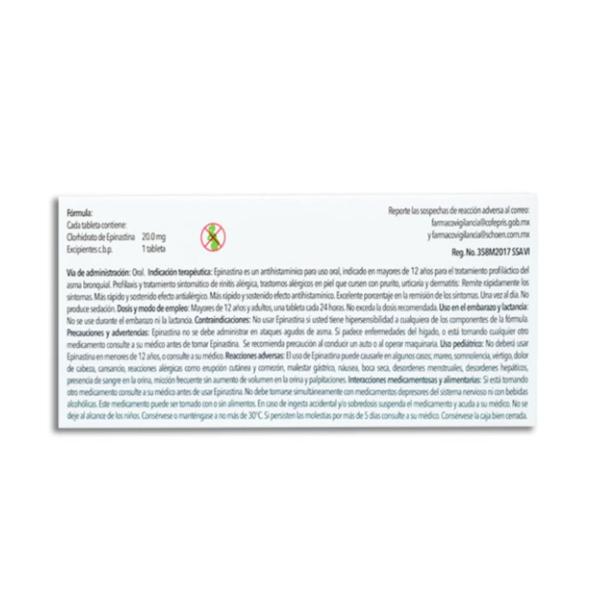 Epinastina 20 mg Caja con 10 Tabletas Laboratorios Schoen