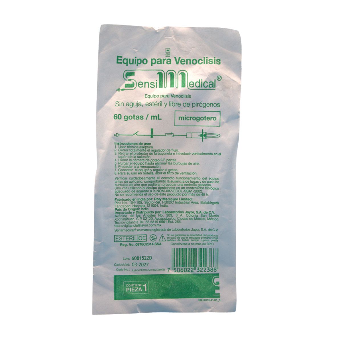 El equipo microgotero Sensimedical Jayor es un dispositivo diseñado para la administración precisa de líquidos en entornos médicos. Este microgotero permite un control minucioso del flujo, lo que facilita la dosificación exacta de medicamentos y soluciones intravenosas.