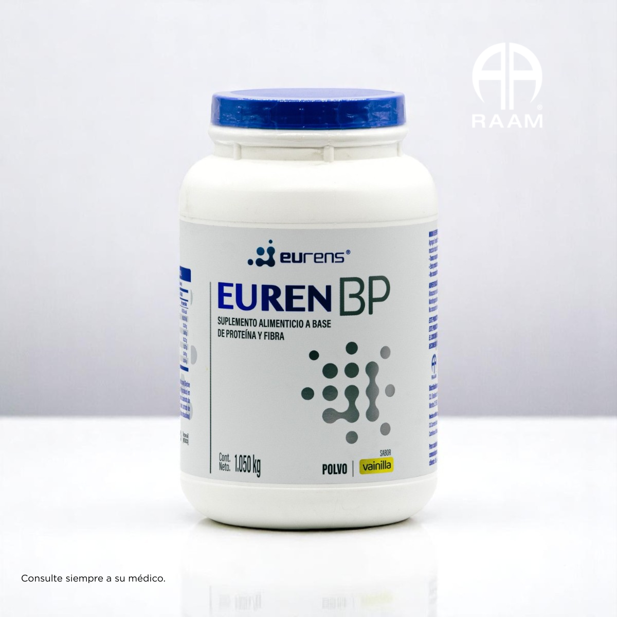🌿 Euren BP es un suplemento alimenticio en polvo formulado por RAAM Laboratorios, ideal para complementar la nutrición diaria con proteína y fibra de alta calidad. Presentación de 1.050 kg.