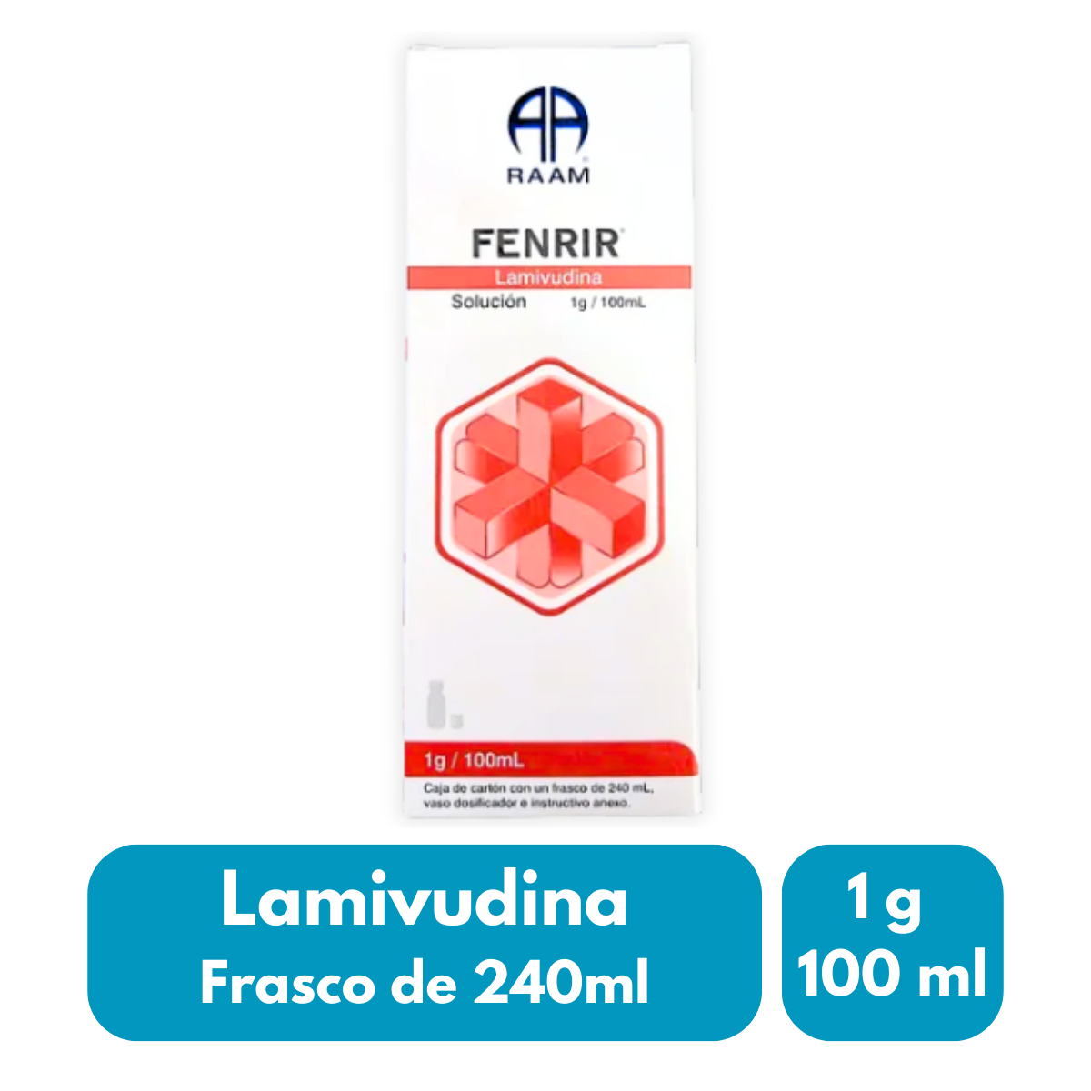 Presentación en solución oral con frasco de 240 ml, que contiene lamivudina 1 g por cada 100 ml. Fenrir es un producto farmacéutico de uso especializado, formulado bajo estándares de calidad para garantizar estabilidad y correcta dosificación. Su presentación líquida permite una administración precisa conforme a indicación médica.