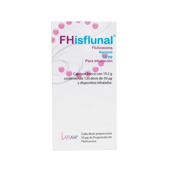FHisflunal (Fluticasona 50 ug) Aerosol 120 Dosis es un medicamento desarrollado por la Farmacéutica Hispanoamericana que se utiliza para el tratamiento de enfermedades respiratorias como el asma y la rinitis alérgica. Este aerosol nasal ofrece 120 dosis de fluticasona, un corticosteroide de acción local que ayuda a reducir la inflamación y aliviar los síntomas respiratorios.