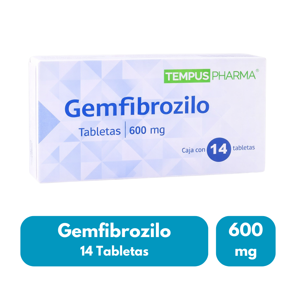 Presentación con 14 tabletas, elaboradas por Tempus Pharma. Cada tableta contiene 600 mg de gemfibrozilo, formulado bajo estándares de calidad farmacéutica. Producto de uso especializado, perteneciente a la línea de cuidado metabólico, desarrollado para manejo controlado y respaldado por un laboratorio con experiencia en el sector.