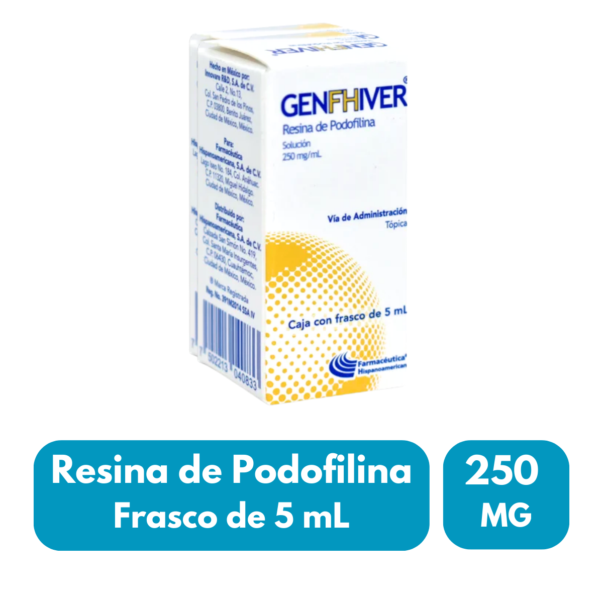Genfhiver Resina de Podofilina solucion 250 mg/ml Caja con Frasco con 5 mL