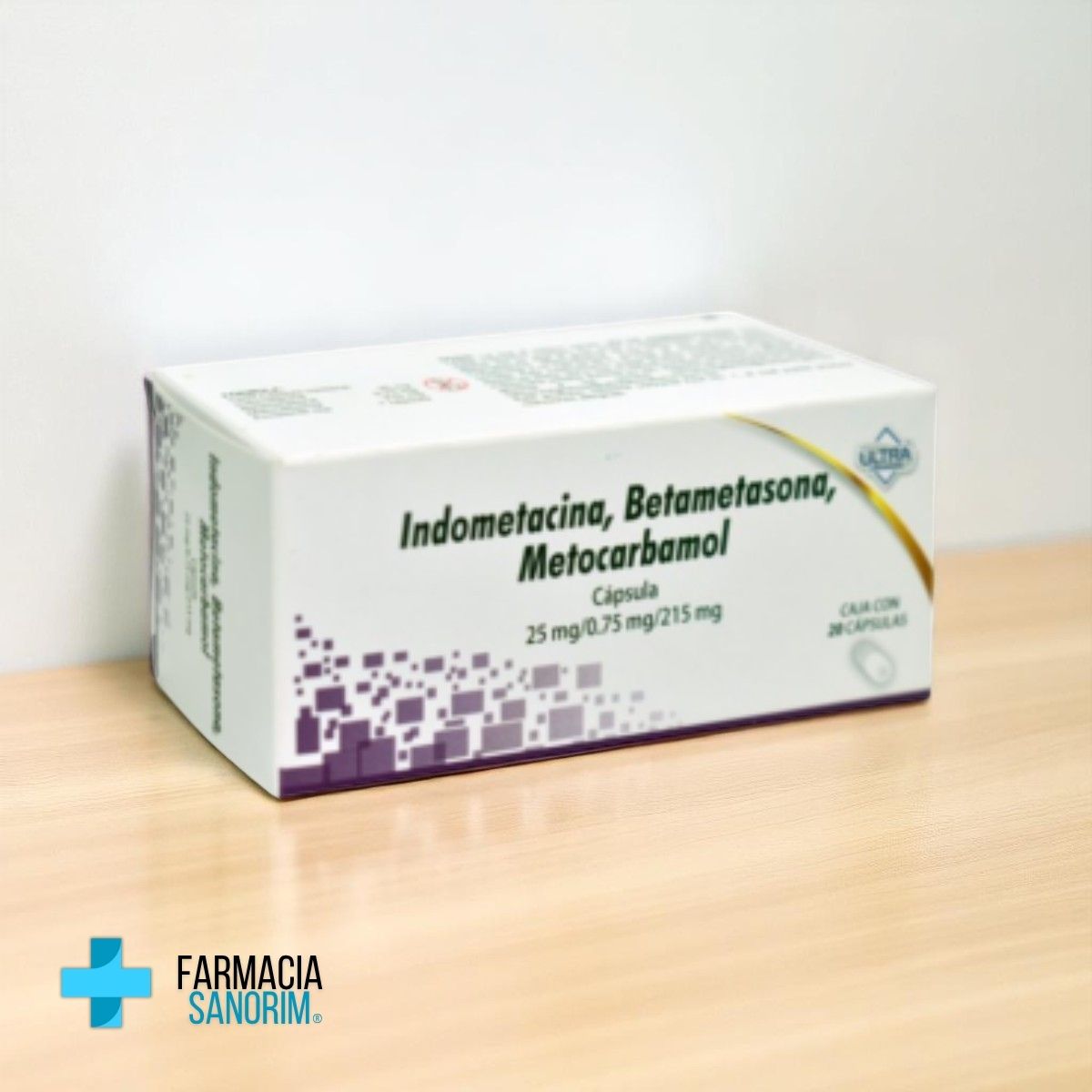 Indometacina, Betametasona, Metocarbamol 25mg / 0.75mg/ 215mg Caja con 20 Capsulas Laboratorios Ultra