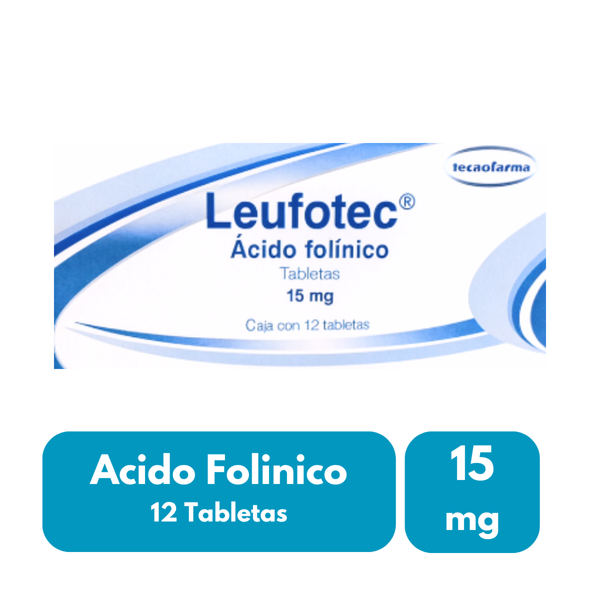 Presentación con 12 tabletas, elaboradas por Tecnofarma bajo la marca Leufotec. Cada tableta contiene 15 mg de ácido folínico, formulado bajo estándares de calidad farmacéutica. Producto de uso especializado, perteneciente a la línea de apoyo metabólico, respaldado por un laboratorio con experiencia y confiabilidad en el sector.