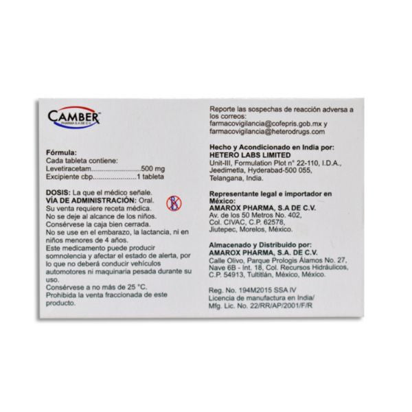 Levetiracetam 500 mg Caja con 60 Tabletas Laboratorios Camber