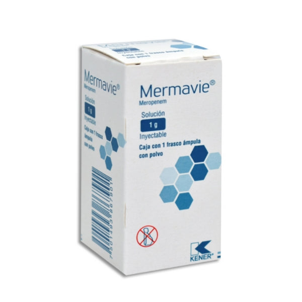 Mermavie (Meropenem) 1 g frasco Ampula, de Laboratorios Kener, es un medicamento antibiótico bactericida de amplio espectro. Mermavie (Meropenem) es un antibiótico perteneciente al grupo de los carbapenémicos, que actúa inhibiendo la síntesis de la pared celular bacteriana.