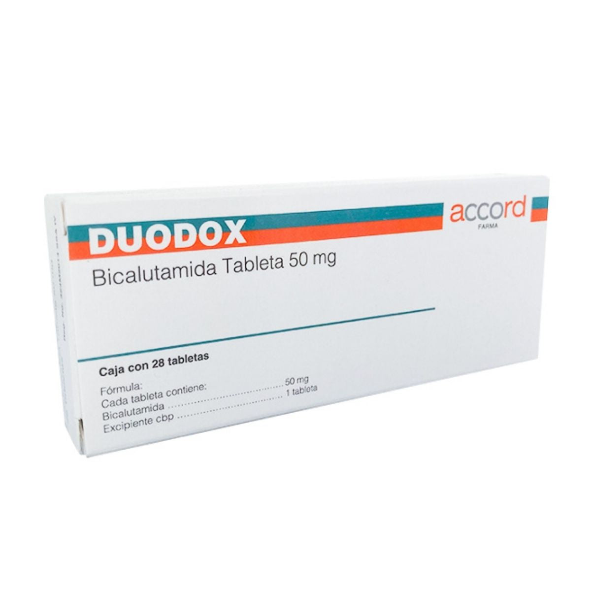 La bicalutamida pertenece a una clase de medicamentos llamados antiandrógenos no esteroides. Duodox (Bicalutamida) 50 mg, se presenta en una caja con 28 tabletas y es fabricado por Laboratorios Accord Farma. Duodox (Bicalutamida) se utiliza para ciertos padecimientos médicos. Bicalutamida debe ser prescrito y supervisado por un profesional de la salud para asegurar un uso seguro y efectivo.
