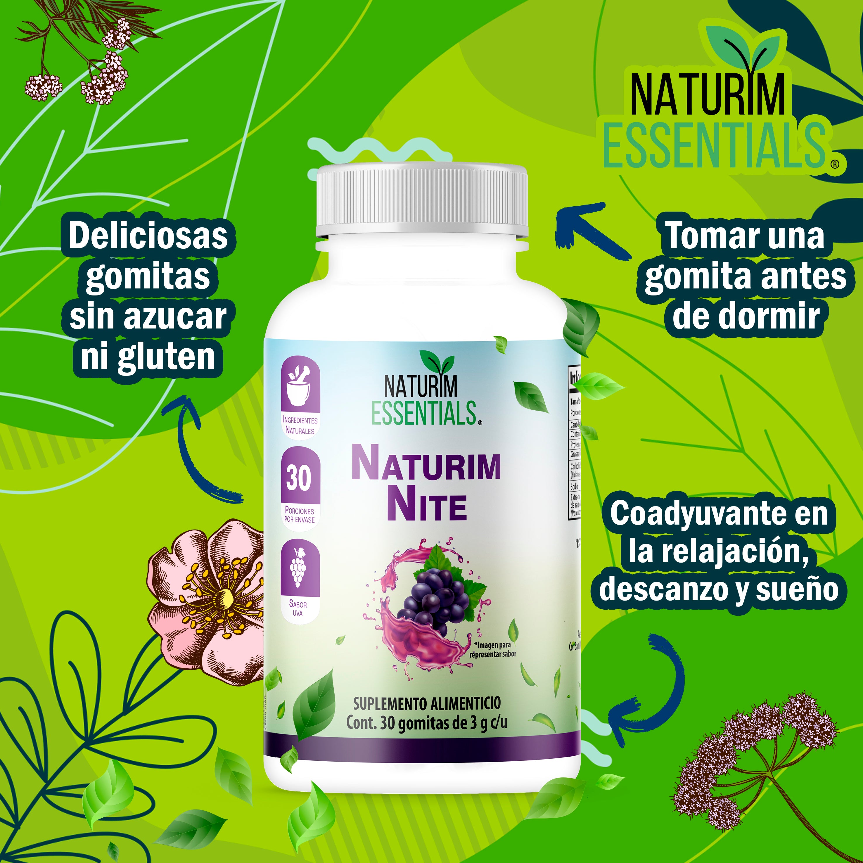 Naturim Nite Gomitas de Valeriana Frasco con 30 Gomitas Sabor Uva Adulto