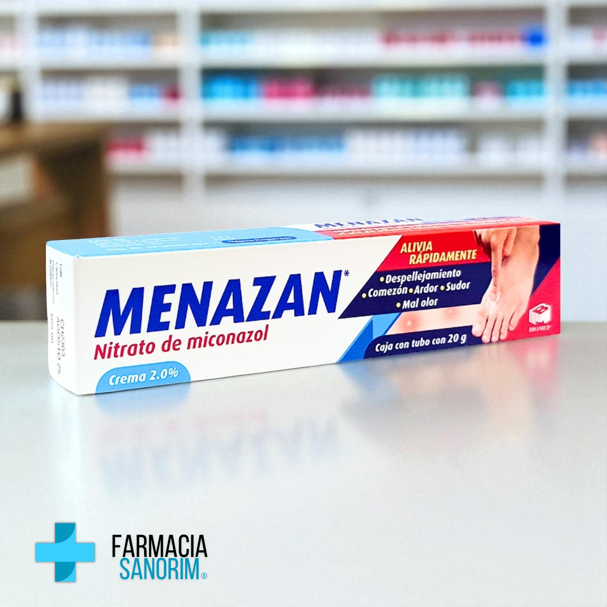 Menazan es una crema dermatológica elaborada por Laboratorios Biomep, que contiene nitrato de miconazol al 2% como componente principal. Se presenta en un práctico tubo con 20 gramos de contenido.