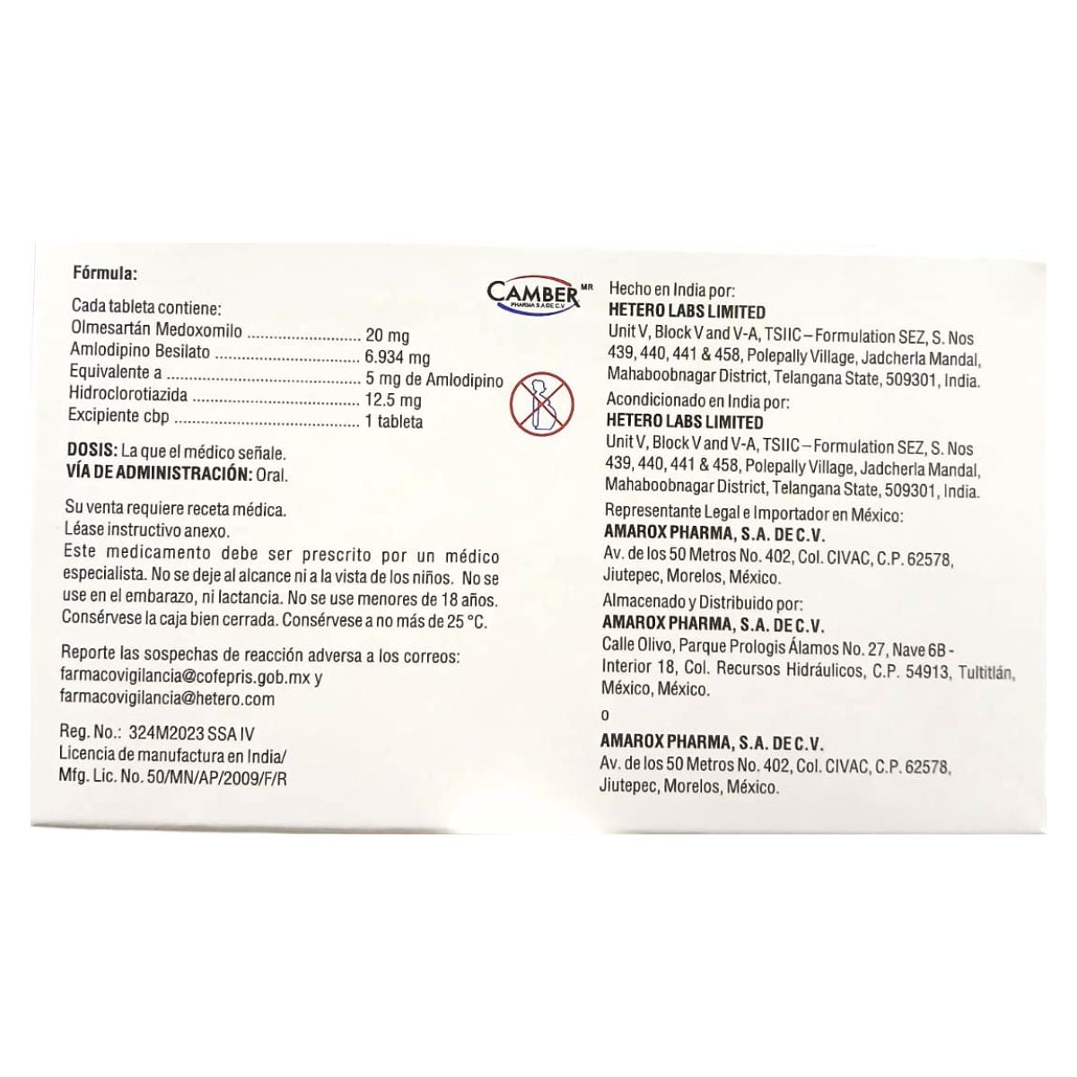 Olmesartán 20 mg / Amlodipino 5 mg / Hidroclorotiazida 12.5 mg Caja con 28 Tabletas