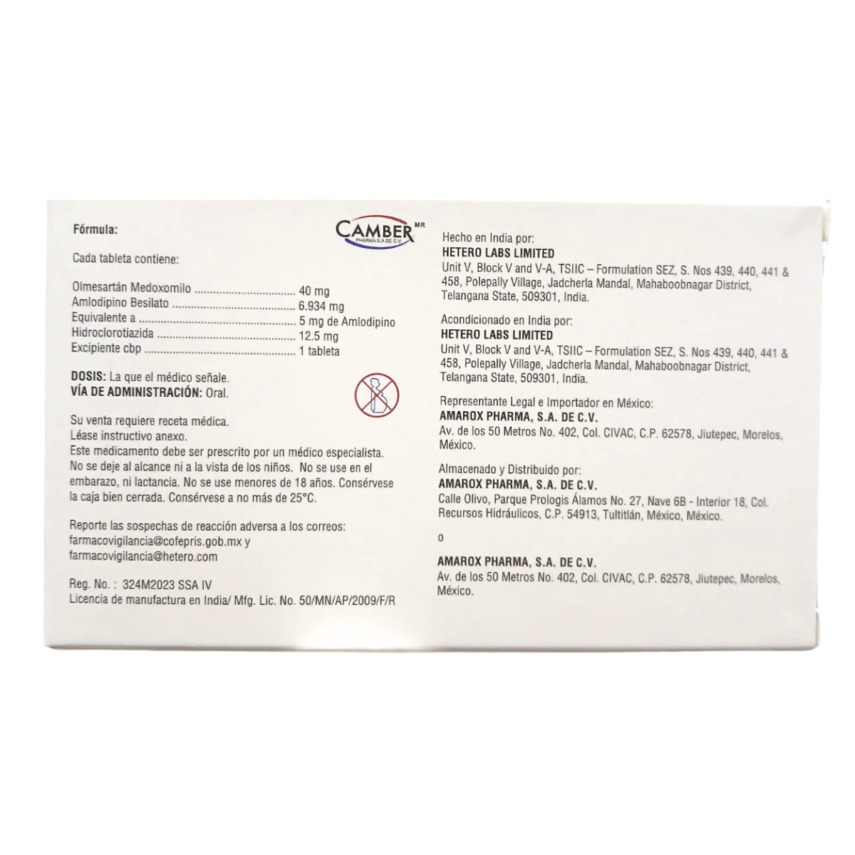 Olmesartán 40 mg / Amlodipino 5 mg / Hidroclorotiazida 12.5 mg Caja con 28 Tabletas