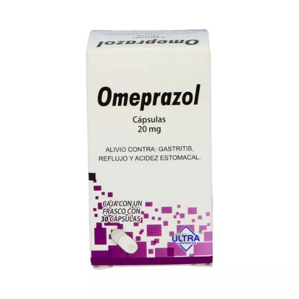 Omeprazol 20 mg es un medicamento utilizado para el alivio de los síntomas de la acidez estomacal y el reflujo ácido. Esta presentación de Ultra Laboratorios viene en una caja con 30 tabletas. El omeprazol pertenece a la clase de medicamentos conocidos como inhibidores de la bomba de protones, los cuales reducen la producción de ácido en el estómago.