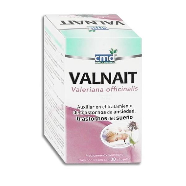 Valnait (Valeriana Officinalis) 250 mg es un suplemento natural a base de valeriana, conocida por sus propiedades relajantes y calmantes. Cada caja de Valnait contiene 30 tabletas de 250 mg, ofrecidas por CMD, una reconocida marca en el campo de los suplementos.