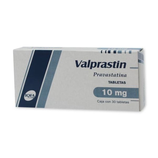 Valprastin (Pravastatina) 10 mg es un medicamento utilizado para el control del colesterol y la prevención de enfermedades cardiovasculares. Esta presentación de Valprastin, fabricada por laboratorios IQFA, viene en una caja que contiene 30 tabletas. La pravastatina es un fármaco perteneciente al grupo de las estatinas, que actúa reduciendo los niveles de colesterol en el organismo, especialmente el colesterol LDL.